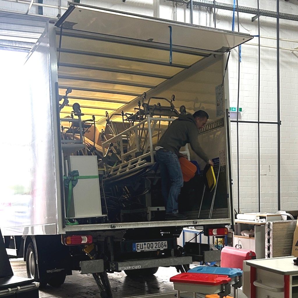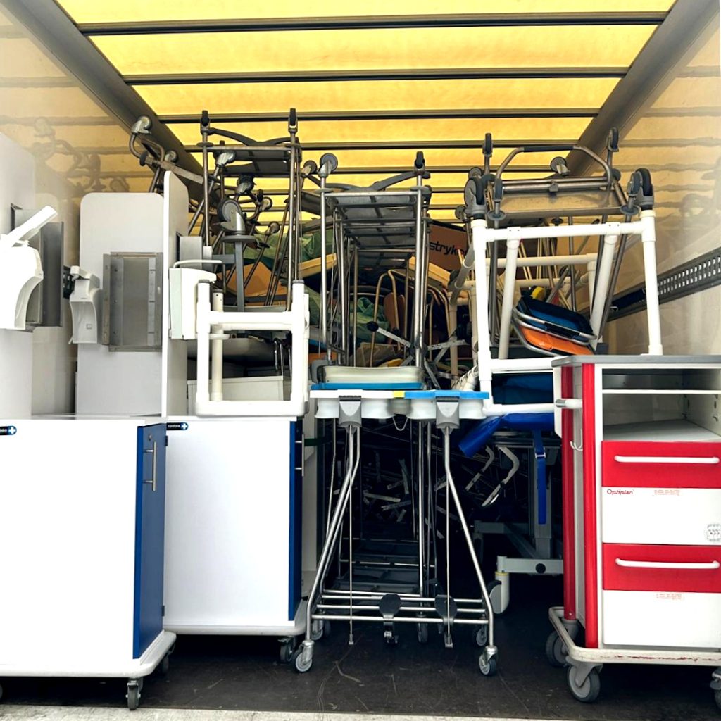 Betten, Stationsmobiliar, Rollstühle, Infusionsständer, Arzneimittel und vieles mehr – eine lange Liste an wertvollen und dringend benötigten Hilfsgütern. Alles ist auf dem Weg nach Dnipro und Saporischschja, um dort sofort bei der Versorgung schwerstverletzter Menschen zu helfen.